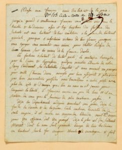 Rarissime document historique écrit de sa main, le seul conservé aujourd'hui avec quelques lettres LE MANUSCRIT QUI FUT TROUVE SUR ELLE LORS DE LA FOUILLE QU'ELLE SUBIT A SON ARRIVEE A LA PRISON DE L'ABBAYE. « Jusqu'à quand, ô malheureux Français, vous plairés-vous dans le trouble et les divisions [?] Assés et trop longtems des factieux, des scélérats ont mis l'intérest de leur ambition à la place de l'intérest général..., pourquoi, ô infortuné[e]s victimes de leur fureur, pourquoi vous égorger, vous anéantir vous-même[s] pour établir l'édifice de leur tyranie sur les ruines de la France désolée.