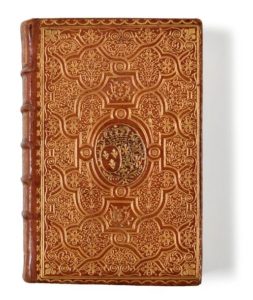 LESZCZYNSKA (Marie). – L'Office de la Semaine Sainte, en latin et en françois. Selon le missel et le bréviaire romain, le nouveau missel bréviaire de Paris [...]. Dédié à la reine, pour l'usage de sa Maison. À Paris, chez Jean-Baptiste Garnier, imprimeur-libraire ordinaire de la reine, de madame la Dauphine, 1752. In-8, (4)-xlviii-852 pp., maroquin rouge, dos à nerfs cloisonné, large décor doré ornant les plats avec armoiries dorées au centre et deux chiffres « M » dorés dans des médaillons, reprise des entrelacs de ce décor dans les entrenerfs du dos avec fleurs-de-lis, coupes ornées, roulette intérieure dorée, doublures et gardes de papier doré estampé de couleurs, tranches dorées ; armoiries du premier plat légèrement désaxées à la dorure, fleur-de-lis du dos martelées à la Révolution, coupes et coiffes légèrement frottées (reliure de l'époque). 1.200/1.500 Illustration gravée sur cuivre : 3 planches hors texte et une vignette dans le texte. EXEMPLAIRE EN MAROQUIN AUX ARMES DE LA REINE MARIE LESCZYNSKA (OHR, pl. n° 2507, fer n° 1 ; chiffre « M » non répertorié). BELLE RELIURE ORNEE A LA FANFARE. Provenance : commandant de La Chapelle (vignette armoriée ex-libris moderne).
