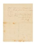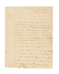 MARAT (Jean-Paul). Lettre autographe signée « Le Dr Marat » [à Alexis Rochon]. Paris, 25 janvier 1788. Une p. 1/2 in-4 ; petites rousseurs, une fente restaurée. Médecin et physicien de son état, le futur publiciste et conventionnel Jean-Paul Marat critiquait certains aspects des théories d'Isaac Newton sur l'optique, notamment en ce qui concerne la réfrangibilité différentielle de la lumière. Il visait cependant pour ses propres travaux scientifiques une reconnaissance de l'Académie des Sciences, laquelle en tenait pour l'orthodoxie newtonienne. Il publia donc à la fin de 1787 une traduction du traité Opticks que le grand savant anglais avait publié en 1704 : il y affirmait son admiration pour ce dernier, mais exposait ses propres idées sur différents points dans un commentaire critique accompagnant sa traduction. « JE N’IGNORE PAS, MONSIEUR, QUE VOUS ETES LE PREMIER QUI AIT ATTAQUE, AVEC CONNAISSANCE DE CAUSE, LA DOCTRINE DE LA DIFFERENTE REFRANGIBILITE ; et je ne doute nullement que vous ne l’eussiés renversée, si vous aviés tourné vos vues du côté des faits qui lui servent de base. Le hazard m’a ménagé ce travail, et quoique nous différions encore de principes, l’amour du vrai nous unit, ET JE ME FLATTE QUE VOUS VOUDRES BIEN RECEVOIR MON OUVRAGE COMME UNE MARQUE D’ESTIME. Examinés-le, Monsieur, avec cette impartialité et ce discernement dont vous avés fait preuve tant de fois ; constatés les faits peu connus qu’il contient, pesés les preuves nouvelles qui y sont développées ; et s’il mérite votre suffrage, daignés concourir au triomphe de la vérité ; avec le zèle généreux d’un vrai scrutateur de la nature... » ALORS SOUS-DIRECTEUR DE L'ACADEMIE DES SCIENCES, L'ABBE ROCHON (1741-1817) s'était acquis une certaine notoriété comme physicien, astronome et opticien. Né Alexis-Marie de Rochon de Fournoux, il fut nommé en 1765 garde des instruments et de la bibliothèque de l'Académie de Marine à Brest, remplit des missions scientifiques au Maroc, au Cap de Bonne-Espérance, dans les mers du Sud, à Madagascar, et devint membre associé de l'Académie de Marine (1774), garde du cabinet particulier de physique et d'optique du roi à La Muette (1775). Il inventa un micromètre prismatique utilisant la biréfringence du cristal de roche (1777), ce qui lui ouvrit les portes des l'Académie des Sciences en 1780, et lui permit d'obtenir le poste d'astronome opticien de la Marine en 1787. Un temps commissaire général des Monnaies pendant la Révolution (1791), il regagna sa Bretagne natale sous la Terreur, puis, ayant retrouvé sa place à l'Institut, fut nommé directeur de l'Observatoire de Paris (1795-1805).