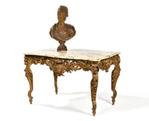 Table de milieu en bois sculpté et doré (à la bronzine) d’après les tables des chasses …