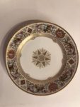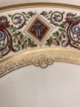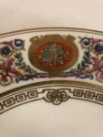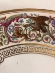 Importante partie de service de table en porcelaine d’après le modèle de la manufacture de Sèvres du Service des Chasses de Louis-Philippe pour le château de Fontainebleau. Riche décor polychrome imprimé et rehaussé or d’animaux enchevêtrés dans des rinceaux avec une alternance de cartouches à attributs en grisailles et du chiffre de Louis-Philippe sous couronne. Les centres décorés d’une étoile et d’une frise à l’or. Comportant : 1 seau à glace 2 grands compotiers 27,5x13 et 27,5x11 2 compotiers 22x13,5 cm 4 coupes sur pied 23x8 6 petites assiettes 17 cm 16 petites assiettes 19 cm 14 moyennes assiettes 21,5 cm 18 moyennes assiettes 22,5 cm 14 moyennes assiettes 22 cm 10 grandes assiettes 25,5 cm 18 assiettes creuses 25 cm et 4,2 de profondeur 12 grandes assiettes 26,5 cm 22 grandes assiettes 24,5 cm Fin du XIXe – début du XXe siècle. Très bon état général, quelques rares égrenures ou restaurations dont deux à signaler sur une coupe à pied.