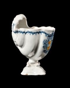 Faience de Faenza Coupe en forme de conque aux armes de marquis ornées d'une clé papale Modèle …