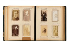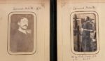 SUR LA FAMILLE D'EDOUARD DETAILLE Album en cuir gauffré comprenant de nombreux clichés photographiques de personnalités de la fin du XIXe siècle et du début du XXe siècle. En première partie des officiels tels que la Reine Victoria, le Comte de Chambord, Léopold II, l'Impératrice douairière de Russie, et de nombreuses personnalités militaires. En seconde partie l'on retrouve de nombreux portraits annotés de la famille Detaille dont des photos du peintre Edouard Detaille, de ses frères et soeurs, son père Jules et des descendances. D'après les notes "Ma mère Marie-Louise Detaille", l'album appartiendrait au fils de la demi-soeur d'Edouard Detaille. 24 pages de 4 photos recto-verso. Plusieurs photos manquantes dans la seconde partie.