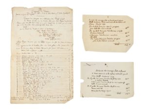 Copies manuscrites de listes énumérant les biens demandés par la famille royale à la Prison du Temple, milieu du XIXe siècle. - (1) Copie manuscrite du procès-verbal des ouvrages demandés par Louis Capet pour l’instruction de son fils. - (2) Mémoires des souliers fait et fournit à Marie Antoinette par le cordonnier Wolf, 1793.