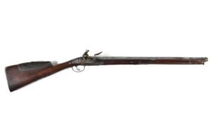 Carabine de chasse à silex. Canon rond à la bouche puis à pans, ciselé et décoré …