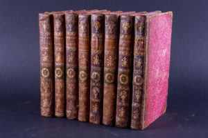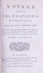 fauve avec coins, dos lisse orné, tranches jaunes (Reliure de l'époque). Sabin, n°39056. Un grand classique de la littérature américaniste. Édition originale, ornée de 3 cartes dépliantes et de 9 tableaux, de cet important récit du voyage du duc de La Rochefoucauld-Liancourt (1747-1827) aux États-Unis dans les dernières années du XVIIIe siècle. Émigré en Amérique sous la Terreur, le philanthrope parcourut durant trois années une grande partie du Nord des États-Unis. Son récit, passionnant, contient de nombreuses observations sur la constitution politique, le commerce, les ressources économiques, la vie rurale, les mœurs et les usages des habitants des États-Unis. Déchirure sans manque à la carte du tome I. Reliure très restaurée.