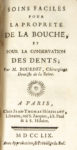 BOURDET (Étienne). Soins faciles pour la propreté de la bouche, et pour la conservation des dents. Paris, Jean-Thomas Hérissant, 1759. In-18, veau marbré, roulette dorée, dos lisse orné, tranches rouges (Reliure de l'époque). Blake, p. 61. -...