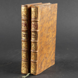 de l'époque). Édition originale de cette savante étude philosophique sur les différents systèmes, sur la divination, les monades, sur Leibniz, sur Spinosa, etc. (Caillet, n°2544). Exemplaire joliment relié. Déchirure sans manque réparée au feuillet M1 du tome I. Galerie de vers à l'angle inférieur ou dans la marge des cinq derniers cahiers de chaque tome.