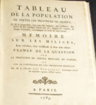 chaque Généralité. Paris, s.n. [Imprimerie royale], 1789. In-4, bradel demi-maroquin noir à long grain (Reliure moderne). INED, n°1396. Édition originale, ornée d'un grand tableau dépliant intitulé Tableau de la Population, et Rapport des Naissances, Mariages et Morts de toutes les généralités du Royaume. Né à Sens en 1746, le chevalier des Pommelles termina sa carrière militaire avec le grade de lieutenant-colonel après avoir participé à la Guerre de Sept ans et à celle de l'indépendance de l'Amérique. C'est pour apprécier le nombre d'hommes susceptibles de servir dans les milices françaises que l'auteur s'est ici livré à une étude démographique du royaume.