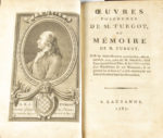 [DUPONT DE NEMOURS(Pierre-Samuel)]. Œuvres posthumes de M. Turgot, ou Mémoire de M. Turgot sur les administrations provinciales, mis en parallèle avec celui de M. Necker […]. Lausanne, s.n., 1787. In-8, basane racinée, dos lisse orné, tranches...