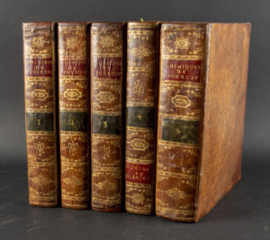 pièce rouge et verte, tranches jaunes (Reliure de l'époque). Le plus grand monument élevé à la science de la chimie au dix-huitième siècle. L'atlas est en demi-reliure dos à décor identique. La reliure de l'atlas est restaurée, le dos refait et le dos ancien réappliqué. Coiffes restaurées.