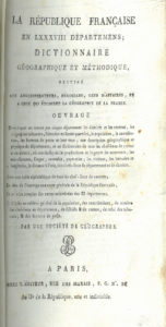 ATLAS. - La République française en LXXXVIII départemens ; dictionnaire géographique et méthodique, destiné aux administrateurs, négocians, gens d'affaires, et à ceux qui étudient la géographie de la France. Paris, Chez l'Auteur, An IIe de...