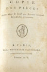 BABEUF(Gracchus) et Sylvain MARÉCHAL. Le Manifeste des égaux. [In :] Copie des pièces saisies dans le local que Baboeuf [sic] occupoit lors de son arrestation. Paris, Imprimerie nationale, Frimaire, an V [1796]. - Suite de la Copie des pièces...
