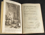 orné de doubles filets dorés et d'un bonnet phrygien répété en tête et queue (Reliure moderne). Tourneux, n°23642. Édition originale, ornée d'un frontispice gravé sur cuivre représentant Le Prévôt de Beaumont détenu dans sa cellule du donjon de Vincennes pour avoir dénoncé un pacte de famine concerté entre divers ministres de Louis XVI. Cachet humide sur le titre du comte de Kergariou, avec devise Là ou ailleurs.