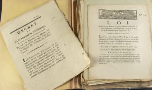 pendant la Révolution. Relevons parmi ces pièces : - LOI qui décharge les Seigneurs Haut-Justiciers de l'obligation de nourrir les Enfans abandonnés (10 décembre 1790). - LOI relative à la vérification des Caisses patriotiques ou de secours (1er avril 1792). - le décret de la convention nationale du 15 octobre 1793 contenant des mesures pour l'extinction de la mendicité. - LOI relative à l'établissement des prisons & d'une maison de correction dans le département de Seine & Oise (13 mai 1792). - le décret du 23 janvier 1793 qui accorde un secours de trois cents mille livres à la ville de Thionville suite aux pertes infligées par l'invasion ou le ravage des ennemis de la Nation. - le décret du 15 février 1793 qui met à la disposition du Ministre de l'Intérieur douze cent mille livres pour la dépense des hôpitaux des Enfans-trouvés. - le décret de la Convention nationale, du 22 Floréal an II, qui ordonne la formation d'un Livre de la Bienfaisance nationale. On note que 4 des pièces de l'ensemble sont des circulaires des hospices de Toulon pour les années 1830.