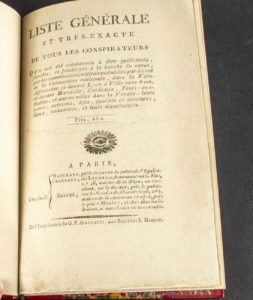 ci-devant Marseille ; Bordeaux, Feurs-aux-Sables, et autres villes dans la Vendée [...]. Paris, Marchand, Channaud, Berthé, De l'Imprimerie de Galletti, s.d. Plaquette in-8 de 32 pages, demi-maroquin rouge avec coins, tête dorée (Reliure de la seconde moitié du XIXe siècle). Effroyable liste des victimes fusillées ou guillotinées à Lyon, Bordeaux et Marseille du 12 octobre au 15 novembre 1793. Bel exemplaire, finement relié, provenant de la bibliothèque P. Desq (ex-libris).