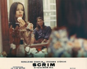 Ensemble de 21 photos dont 17 en couleurs et plusieurs doubles pour le film de Carlos Saura "Cria cuervos" avec Géraldine Chaplin. Photos destinées aux salles de cinéma pour la présentation du film. Format : +/- 19 x 24 cm./ "Scrim" (1977). Ensemble de 6 photos en couleurs pour le film de Jacob Bijl "Scrim" avec Géraldine Chaplin. Photos destinées aux salles de cinéma pour la présentation du film (titre imprimé au bord infér.). Format : 24 x 30 cm. On joint l'affiche du film en 2 tons./ Ens. 27 photos + 1 affiche.