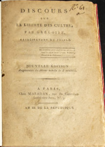 l'année de l'originale, de cet appel à la tolérance. Les catholiques et surtout une foule de prêtres sont l'objet spécial de la fureur des athées extrémistes (…) Le gouvernement ne doit adopter, encore moins salarier aucun culte, quoiqu'il reconnaisse en chaque individu le droit au sien. Le décret adopté fut largement inspiré des idées de Grégoire : il assurait que l'exercice d'aucun culte ne peut être troublé.