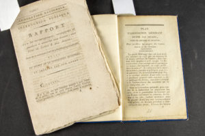 GRÉGOIRE. Plan d'association générale entre les savans, gens de lettres et artistes, Pour accélérer les progrès des bonnes mœurs et des lumières. S.l.n.d. [1816]. Plaquette petit in-8 de 64 pages (Cartonnage papier bleu de l'époque)....
