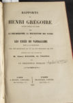 GRÉGOIRE. Rapports sur la bibliographie, la destruction des patois et des excès du vandalisme. Caen, A. Massif ; Paris Delaroque, 1867. In-8, bradel percaline rouge, couverture (Reliure de la fin du XIXe siècle). On a relié à la suite : Rapport...