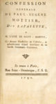 américaine et commandant en chef de la Garde nationale au début de la Révolution. La plupart de ces pièces ont été publiées sous la Révolution ; citons parmi elles : - LA FAYETTE. Confession générale de Paul-Eugène Mottier, dit Lafayette, à M. l'abbé de Saint-Martin. Paris, 1790. Avec une gravure coloriée. - BRISSOT. Discours sur les dénonciations relatives au général Lafayette, prononcé le 10 août 1792. S.l.n.d. - RIVAROL. De la vie politique, de la fuite et de la capture de M. La Fayette.Liège, 1792. - DÉNONCIATION de M. le marquis de La Fayette, au bureau de Monseigneur le comte d'Artois. S.l.n.d. - CRIMES de La Fayette en France […].S.l., De l'Imprimerie du Patriote françois, s.d. - CONSPIRATION du club des Jacobins contre M. de La Fayette. Paris, De l'Imprimerie d'un royaliste, s.d. - CONSEILS de M. La Fayette aux gardes nationales, depuis l'affaire de Nancy, et à la veille d'autres malheurs. S.l., Guilhemat, s.d. - DISCOURS de M. Lafayette au Roi. Riom, De l'Imprimerie de Martin Degoute, 1791.