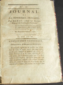MARAT (Jean-Paul). Journal de la République française. Ensemble de 51 numéros, entre octobre 1792 et janvier 1793. In-8, brochure de l'époque, papier marbré. Le dernier journal de Marat, qui prit la suite de L'Ami du peuple en 1792. Parurent 165...