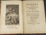 PRIÈRES pour les aristocrates agonisans, avec l'office des morts et les litanies de la lanterne. Paris, De l'Imprimerie du Clergé, 1790. Plaquette in-8 de 31 pages, bradel demi-toile (Reliure vers 1900). Violent pamphlet contre les aristocrates : O...