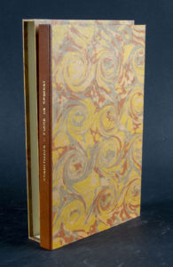 couverture de papier vert muette, chemise à dos de maroquin fauve et étui de Devauchelle. Édition originale. L'Académie d'Amiens ne jugea pas l'éloge de Robespierre digne de mériter un prix. Exemplaire broché, tel que paru ; il a été interfolié de feuillets blancs par un membre de l'Académie d'Amiens, M. de Cayrol, qui y a porté les variantes du manuscrit autographe de Robespierre conservé dans les archives de l'académie amiénoise en comparaison avec la version imprimée. Une longue note de M. de Cayrol, datée du 8 novembre 1832, couvre le premier feuillet blanc intercalé : […] grâce au sanglant triangle d'acier, un écrit de Robespierre est aujourd'hui une véritable rareté littéraire qu'il est impossible de passer sous silence surtout quand on a la faculté de comparer l'ouvrage imprimé avec le manuscrit autographe de l'auteur. J'ai donc cru faire une chose agréable à mon ami Beuchot en doublant le nombre des pages de la brochure qu'il a bien voulu me confier [...].