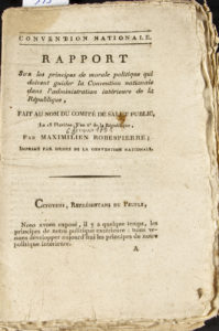 ROBESPIERRE (Maximilien). Rapport sur les principes de morale politique qui doivent guider la Convention nationale dans l'administration intérieure de la République […], le 18 Pluviôse, l'an 2e de la République. [Paris], De l'Imprimerie...