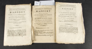 ROBESPIERRE (Maximilien). Ensemble 3 brochures in-8, déreliées ou en feuilles. Réunion de 3 rapports de Robespierre concernant la situation politique de la République, en particulier à l'égard des nations étrangères et de la coalition, et...
