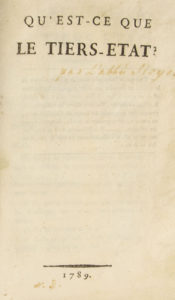 politique de la France moderne. (Jacques Quentin in En français dans le texte, n°186.) Véritable cri de guerre (Tocqueville), son influence fut immense. Sous son titre cinglant (qui serait dû à Chamfort), Sieyes résume le problème politique de la France à la veille de la convocation des États-généraux : Qu'est-ce que le Tiers État ? Tout. Qu'a-t-il été jusqu'à présent dans l'ordre politique ? Rien. Que demande-t-il ? À y devenir quelque chose. Prônant la proportionnalité à une « Assemblée générale », Sieyes est entre autre l'inventeur de la représentation moderne.
