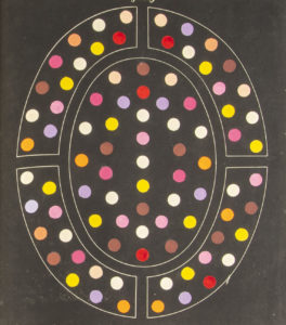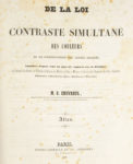 dorée (Reliure de la fin du XIXe siècle). Atlas complet des 40 gravures numérotées et tirées sur 22 planches dépliantes, dont certaines imprimées en couleurs et rehaussées au pinceau, et des 9 feuillets imprimés sur divers papiers de couleurs. Présenté seul, il accompagne le volume de l'édition originale de La loi du contraste simultané des couleurs, remarquable texte fondateur de la théorie des couleurs du chimiste Eugène Chevreul (1786-1889) (cf. En français dans le texte, n°237). Certaines planches portent la signature de Chevreul. Quelques légères rousseurs. Partie dépliante d'une planche détachée (conservée) avec déchirure sans manque sur l'autre moitié.