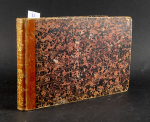 un titre-frontispice et diverses suites concernant les ouvriers, les costumes militaires, les métiers de la rue, les cris de Paris, le théâtre, les jeux et les saltimbanques, ou encore les mendiants. Quelques planches sont avant la lettre. Ex-libris armorié avec devise Plus penser que dire, qui est celui d'Henri Joliet, bibliophile dijonnais. Quelques rousseurs, trace de pliure sur le titre, petite fente sans manque sur le bord d'une gravure, petite tache d'encre à un chiffre de la date au titre. Reliure frottée, léger accroc en queue.