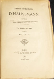 FERRY (Jules). Comptes fantastiques d'Haussmann. Lettre adressée à MM. les membres de la commission du corps législatif chargés d'examiner le nouveau projet d'emprunt de la ville de Paris. Paris, Armand Le Chevalier, 1868. Grand in-8, broché,...