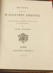 FRESNEL (Augustin). Œuvres complètes. Publiées par Henri de Sénarmont, Émile Verdet et Léonor Fresnel. Paris, Imprimerie impériale, 1866-1870. 3 volumes in-4, chagrin rouge, décor à la Du Seuil, mention Concours général des Lycées &...