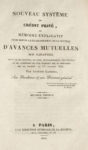 LAMBERT (Auguste). Nouveau système de crédit privé ou mémoire explicatif pour servir l'établissement d'avances mutuelles sur garanties. Paris, à la direction générale de la société, 1826. In-8, broché, couverture papier marbré, chemise...