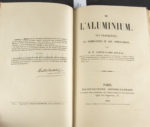 Édition originale, ornée d'une planche dépliante. La portée des travaux de Sainte-Claire Deville (1811-1881) est considérable dans le domaine de la chimie : cet expérimentateur, fondateur de la mécanique chimique, mit en effet au point un procédé de fabrication de l'aluminium à l'échelle industrielle. Ce livre traite notamment des propriétés physiques et chimiques de l'aluminium, de sa préparation, des méthodes d'extraction et des applications industrielles de ce métal (Philippe Zoummeroff in En français dans le texte, n°279). Couverture restaurée, petites restaurations et taches à la planche.