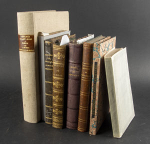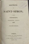 Exposition. 1829. Paris, Au Bureau de l'Organisateur, Mesnier, 1830. - Doctrine de Saint-Simon. Exposition. Première année. 1829. Seconde édition. Paris, Au Bureau de l'Organisateur, Mesnier, 1830. - Lettre sur la religion et la politique, 1829 ; suivi de l'Éducation du genre humain. Paris, Au Bureau de l'Organisateur, Mesnier, 1831. - Oeuvres de Saint-Simon. Paris, Capelle, 1841. - L'Organisateur. Troisième édition. Paris, Corrérad, 1816. Les 61 premières pages sont en fac-similé. - Religion saint-simonienne. Morale. Réunion générale de la famille. Enseignements du père suprême. Les trois familles. Paris, Librairie saint-simonienne, avril 1832. Portrait du père Enfantin. - Science de l'homme, physiologie religieuse. Paris, Victor Masson, 1858. 2) un recueil de 5 opuscules saint-simoniens en un volume in-8 : La Prophétie. Paris, Éverat, 1832. - Commission générale de la famille saint-simonienne (extraits de l'Organisateur). S.l.n.d. - Le Disciple de Saint-Simon aux saints-simoniens et au public. S.l.n.d. - Économie politique [articles extraits du Globe]. S.l.n.d. - La Presse [articles extraits du Globe]. S.l.n.d.