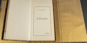 SEGALEN (Victor). Stèles. Pei-King, Des presses de Pei-T'ang, 1912. Grand in-8 plié à la chinoise, sous chemise de soie brochée. En français dans le texte, n°340. Édition originale de ce recueil de poèmes de Victor Segalen (1878-1919),...