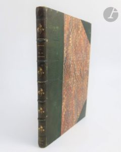 COMMYNES (Philippe de). Cronicque et histoyre faicte & cõposee par feu messure Philippe de Cõmines Chevallier, seigneur Dargenton, contenant les choses advenues Durant le regne du Roy Loys unziesme tant en France que Espaigne et lieux circunvoisins. Nouvelleme(n)t reveue et corrigee Avec plusieurs notables mis au marge. Paris : Pierre Godoul, Francois Regnault, 1529. — In-folio, demi-maroquin vert foncé à coins, dos à nerfs orné, tranches dorées (reliure du XXe siècle). Bechtel, C-451. Belle et rare édition gothique en français des 6 premiers livres des « Mémoires » de Philippe de Commynes, imprimée par Guillaume de Bossozel pour Pierre Godoul et François Regnault. Elle suit l'édition de 1525 imprimée par Antoine Cousteau pour Galliot Du Pré. Le titre comporte un bel encadrement et la marque de Pierre Godoul. Exemplaire en reliure du début du XXe siècle. Frottements d'usage à la reliure, coins émoussés. Titre remonté, provenant sans doute d'un autre exemplaire. Quelques rares rousseurs et taches d'encre. Taches noires sur le texte au feuillet 54 recto. Marge inférieure du feuillet D2 coupée, sans atteinte au texte. Les notes imprimées dans la marge des feuillets 87 à 106 (fin) ont été légèrement coupées. Restauration sur le bord du dernier feuillet. Provenance : Ad. Lefrancq, avec ex-libris.