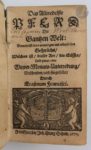FRANCISCI (Erasmus). Das Alleredelster Pferd Der Gantzen Welt… [Suivi de] : Die Alleredelste Verändrung der gantzen Welt… Francfort-sur-le-Main : Johann Georg Schiele, 1670-1671. — Deux ouvrages en un volume in-12, parchemin ivoire à rabats, dos lisse, tranches rouges (reliure de l'époque). Édition originale rare de ces deux ouvrages de l'homme de lettre allemand Francisci Erasmus (1627-1694). Ces deux textes, dont les titres peuvent se traduire « Le cheval le plus noble du monde entier » pour le premier et « Le plus noble changement du monde entier » pour le second, font partie d'une série de textes du même genre concernant d'autre domaines dont la vengeance des âmes, l'art, etc. Bon exemplaire en reliure de parchemin de l'époque. Quelques salissures à la reliure. Provenance : Bibliothèque du couvent des Capucins de Breslau, avec ex-libris. - Stillfreid, avec ex-libris « Ex Bibliotheca Stillfridiana ».