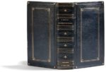*GROTIUS (Hugo). Dissertationes De Studiis instituendis. Amsterdam : Louis Elzevier, 1645. — In-12, 143 x 75 : (6 ff.), 687 pp. Maroquin bleu foncé, double encadrement de filets à froid et dorés avec fleuron doré aux angles sur les plats, dos à nerfs orné de motifs dorés et à froid, filets dorés intérieurs, gardes de parchemin, non rogné, emboîtage demi-maroquin noir (Simier R. du roi pour la reliure et James Macdonald à New York pour l'emboîtage). Willems 1028. Édition publiée la même année que celle donnée par Louis Elzevier à Amsterdam, imprimée dans la même ville par Joan Blaeu. Elle possède le même titre gravé mais une pagination différente. Nous reprenons ce que dit Willems sur ce livre. Il s'agit d'un « recueil intéressant, comprenant vingt-quatre dissertations sur la meilleure méthode à suivre dans l'étude des lettres et des sciences. Composées par des juges aussi compétents dans la matière que les Grotius, les Naudé, les Érasme, les Barlæus, les Campanella, &c., ces dissertations renferment quantité de vues ingénieuses et pratiques ». Précieux exemplaire à toutes marges, relié par Simier et aux provenances prestigieuses. Il proviendrait en premier lieu de la bibliothèque de l'éditeur et bibliophile Antoine-Augustin Renouard (1765-1853), pour qui la reliure aurait été faite. La présence de gardes en parchemin est l'un des indices de cette provenance. Il rentra par la suite en possession du grand bibliophile américain Mortimer Leo Schiff (1877-1931) qui fit faire de son côté l'emboîtage par le relieur James Macdonald (1859-1920) à New York, puis du bibliophile anglais John Hely-Hutchinson (1881-1955) et de Charles Van der Elst, président de la Société des bibliophiles et iconophiles de Belgique. Exemplaire parfaitement conservé. Provenance : Antoine-Augustin Renouard. - Mortimer Leo Schiff, avec ex-libris (cat. décembre 1938, n° 1597). - John Hely-Hutchinson, avec ex-libris (cat. 1956, n° 326). - Charles Van der Elst, avec ex-libris (cat. I, 1985, n° 99).