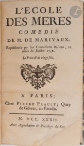 MARIVAUX. L'École des mères, comédie. Paris : Pierre Prault, 1732. — In-12, demi-parchemin à …