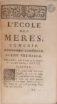 MARIVAUX. L'École des mères, comédie. Paris : Pierre Prault, 1732. — In-12, demi-parchemin à la bradel, dos lisse (reliure du XIXe siècle). Édition originale de cette comédie représentée pour la première fois par les comédiens italiens le 26 juillet 1732. Léger manque à la pièce de titre. Restauration au titre et aux feuillets D2 et D3, sans atteinte au texte, mouillure claire au dernier feuillet.