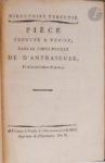 [RÉVOLUTION FRANÇAISE]. Ensemble de 12 plaquettes révolutionnaires reliées en 4 volumes in-8. Comprend : - CONVENTION NATIONALE. Ensemble de deux brochures : BOISSY D'ANGLAS. Discours préliminaire au projet de Constitution pour la République française, prononcé par Boissy-d'Anglas, au nom de la commission des onze, Dans la séance du 5 messidor, an 3. Paris : Imprimerie Nationale, Messidor an III [1795]. — ROBESPIERRE (Maximilien). Rapport fait au nom du Comité de Salut public, Par Maximilien Robespierre, Sur les Rapports des idées religieuses & morales avec les principes républicains, & sur les fêtes nationales. Séance du 18 floréal, l'an second de la République française une & indivisible. Paris : Imprimerie Nationale, s.d. 2 brochures en un volume in-8, cartonnage papier beige à la bradel, tranches bleues (cartonnage du XIXe siècle). Le Rapport de Robespierre est suivi du « Plan de la fête de l'Être Suprême » par David. - Liste de MM. Les électeurs du département de Paris. De mil sept cent quatre-vingt-onze. Paris : Prault D. S. M., 1791. — In-8, demi-toile verte à la bradel, dos lisse, non rogné (Bonneau). Dos passé. Provenance : Ogden Codman, avec ex-libris. - Relation Du Voyage des cent trente-deux Nantais, envoyés à Paris par le Comité révolutionnaire de Nantes. S.l., 1794. In-8, demi-toile rouge à la bradel, non rogné (reliure du XIXe siècle). Rousseurs. - [DIRECTOIRE EXÉCUTIF]. Recueil de 8 brochures : BERTHIER. Pièces trouvées à Venise, dans le porte-feuille de d'Antraigues, Et écrite entièrement de sa main. Fontenay-le-Peuple : impr. de Goichot, An V. [(16 pp.) — Déclarations de Duverne Dupresle ou Dunant, Annexées au registre secret du Directoire exécutif, le 11 ventôse an 5. Fontenay-le-Peuple : impr. de Goichot, An V. (16 pp.) — Le Directoire exécutif, aux français. Du 2 Prairial, l'an 4 de la République française, une et indivisible. S.l. : imprimerie du Directoire exécutif, [1795]. (7 pp.) — Lettre aux Bretons. S.l., s.d. (10 pp., (1 f. blanc). — Tot ou tard la Raison reprend ses Droits. S.l., s.d. (4 pp.) — Épître au comte de R..., Auteur du Petit almanach des Grands-Hommes. S.l., s.d. (4 pp.) — FOISSAC-LA-TOUR. Ministère de la police générale de la République. S.l. : imprimerie du Directoire exécutif, [An V]. (7 pp.) — COCHON. Rapport au directoire exécutif. Du 24 fructidor, l'an 4 de la République française, une et indivisible. S.l. : imprimerie du Directoire exécutif, [An V]. (7 pp.). 8 brochures en un volume in-8, demi-maroquin rouge (reliure du XIXe siècle).