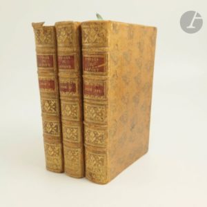TOURNEFORT (Joseph Pitton de). Relation d'un voyage du Levant, fait par ordre du Roy. Contenant L'Histoire Ancienne & Moderne de plusieurs Isles de l'Archipel, de Constantinople, des Côtes de la Mer Noire, de L'Armenie, de la Georgie, des Frontieres de Perse & de l'Asie Mineure. Avec Les Plans des Villes & des Lieux considerables ; Le Genie, les Mœurs, le Commerce & la Religion des differens Peuples qui les habitent ; Et l'Explication des Médailles & des Monumens Antiques. Enrichie de Descriptions & de Figures d'un grand nombre de Plantes rares, de divers Animaux ; Et de plusieurs Observations touchant l'Histoire Naturelle. Lyon : Anisson, Posuel, 1717. — 3 volumes in-8, veau havane moucheté, dos à nerfs orné, tranches marbrées (reliure de l'époque). Seconde édition, la première lyonnaise, parue la même année que l'originale parisienne in-4 publiée par Michel Louis Renaume de la Garance. L’un des voyages les plus intéressants sur le Levant. Professeur au Collège de France et botaniste fameux, Joseph Pitton de Tournefort (1656-1708) fut envoyé par le roi Louis XIV au Levant et en Afrique. Il s'y rendit en 1700 accompagné du dessinateur Claude Aubriet, et du jeune médecin allemand Andreas Gundelsheimer. Il visita Candie et toutes les îles de l’Archipel, Constantinople, les côtes méridionales de la mer Noire, l’Arménie turque et persane, la Géorgie, le mont Ararat et revint par l’Asie mineure jusqu’à Smyrne. Rédigée sous la forme de vingt-deux lettres adressées au comte de Pontchartrain, la relation offre d'importants renseignements d'ordre ethnographique et historique, sur les mœurs et les coutumes des populations, sur le commerce et les religions des pays traversés, sur la minéralogie, la description très détaillée d’un grand nombre de plantes (1356) ou d'animaux nouveaux, ainsi que des curiosités touchant l'histoire naturelle. Dans l'histoire de la botanique, l'auteur a laissé son nom à un nouveau système de classification des végétaux, principalement basé sur l'examen de la corolle. L'illustration se compose de 153 planches dont quelques-unes dépliantes, représentant des vues, des costumes, des cartes, des animaux ainsi que des plantes. Coiffe de tête du premier volume abîmée avec manque, celle du second volume est légèrement fendue sur les bords, manque au dernier caisson du dernier tome. La planche dépliante page 227 dans le premier volume a été doublée dans sa partie inférieure. Taches et déchirures dans la marge intérieure des pages 214 et 215 du dernier volume, ainsi qu'à la planche figurant entre ces deux pages, avec atteintes au cadre et à la gravure. Quelques feuillets brunis et de rares taches sur le bord de certains feuillets. Marges des planches parfois courtes.