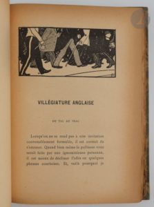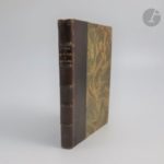AXA (Zo d'). De Mazas à Jérusalem. Paris : Chamuel, 1895. — In-18, demi-maroquin brun, dos à nerfs, non rogné, couverture et dos conservés (reliure de l'époque). Édition originale du chef-d'œuvre de Zo d'Axa, dont il n'a pas été tiré de grands papiers. Elle est illustrée de 6 en-têtes et un cul-de-lampe d'après des dessins de Lucien Pissarro, Steinlen et Félix Vallotton. La couverture, ici conservée d'un seul tenant, est ornée d'une composition en couleurs de Théophile Alexandre Steinlen. EXEMPLAIRE D'EDMOND DE GONCOURT, enrichi de cet envoi autographe signé de l'auteur sur le faux titre : « pour Edmond de Goncourt // hommage de // Zo d'Axa. » Dos reteinté, quelques traces de frottements d'usage. Déchirures avec manques et restaurations à la couverture. Déchirures sur le bord intérieur du faux titre. Feuillets brunis et cassants. Provenance : Edmond de Goncourt, avec envoi de l'auteur.