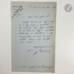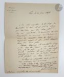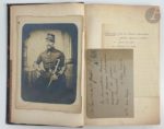 CARBUCCIA (Jean-Lucien-Sébastien). Armée d'Algérie. Du dromadaire comme bête de somme et comme animal de guerre. Le Régiment des dromadaires À l'Armée d'Orient (1798-1801). Paris : Librairie militaire de J. Dumaine, 1853. — In-8, demi-chagrin aubergine, dos à nerfs orné, tranches mouchetées (reliure de l'époque). Édition originale rare de cet ouvrage contenant les deux rapports du général et archéologue Jean-Lucien-Sébastien Carbuccia (1805-1854), où se trouvent traitées toutes les questions relatives à l'emploi du dromadaire. Le premier rapport, fait en janvier 1844, est adressé au maréchal Bugeaud, gouverneur général de l'Algérie. Il aborde « l'histoire naturelle de l'animal sous le rapport physiologique » et « son aptitude comme animal de guerre ». Le second fut composé en juillet 1844. Il traite également de l'histoire naturelle du dromadaire mais également de ses mœurs et de son hygiène, puis examine les convois et l'organisation des corps montés. Précieux exemplaire du baron Jean-Baptiste Michel de Trétaigne, médecin militaire et homme politique, dernier maire de Montmartre et premier maire du XVIIIe arrondissement en 1860. Il passa par la suite dans la collection de l'homme politique François GUIZOT (1787-1874), successivement ministre de l’Intérieur, de l'éducation nationale et des affaires étrangères, puis président du Conseil. Il fit enfin partie de la bibliothèque du photographe et homme militaire le marquis Gustave de Courcival (1834-1908), qui servit essentiellement en Algérie. Exemplaire enrichi d'une photographie originale en tirage argentique d'époque du général Carbuccia, portant au verso un double cachet rouge d'Ambroise Tardieu à Royat. On compte également 3 L.A.S. du général, de 1853, d'une page in-32 carré, du 22 février 1854, d'une page in-4 et du 10 mai 1854, d'une page in-8. Dos passé, quelques épidermures. Rousseurs éparses. Provenance : Jean-Baptiste Michel de Trétaigne, avec ex-libris. - François Guizot, avec cachet sur le titre (vente 1875, I, 1687). - Gustave de Courcival, avec le cachet à son nom sur le faux titre.