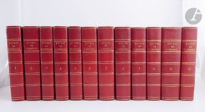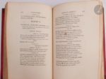CORNEILLE (Pierre et Thomas). Œuvres… avec les commentaires de Voltaire. Paris : Antoine-Augustin Renouard, 1817. — 12 volumes in-8, demi-maroquin rouge à coins, dos à nerfs orné de filets dorés, non rogné (reliure de l'époque). Belle édition des œuvres de Pierre et Thomas Corneille, celles de ce dernier étant regroupées dans le dernier volume. Elle est illustrée de deux portraits des deux auteurs par Augustin de Saint-Aubin et de vingt-quatre planches, toutes gravées d'après les dessins de Moreau le jeune sauf celle en frontispice du volume de « L'Imitation de Jésus-Christ » faite d'après Prudhon. UN DES 100 EXEMPLAIRES SUR PAPIER VÉLIN, AVEC LES VINGT-QUATRE FIGURES DE MOREAU ET DE PRUDHON EN ÉTAT AVANT LA LETTRE. Bon exemplaire en reliure de l'époque, à toutes marges. Quelques légers frottements d'usage aux dos. Rousseurs. Déchirures sur le bord du feuillet des pages 153-154 dans le volume 5, sans atteinte au texte, de même qu'aux pages 305 à 308 dans le tome 6, avec atteinte au texte de la page 308.