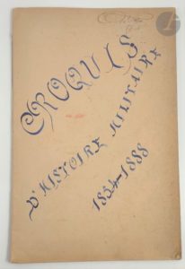 CROQUIS D'HISTOIRE MILITAIRE. 1854-1888. Manuscrit in-folio, broché. Beau manuscrit réalisé en …